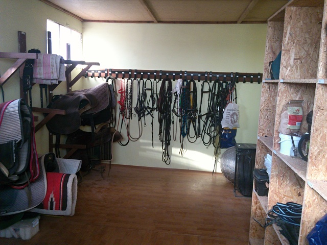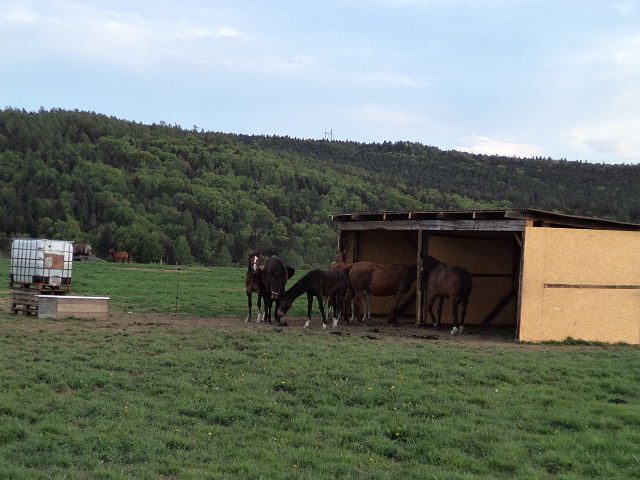 (Zimní přístřešek, kde se koníci večer dokrmují jádrem)
