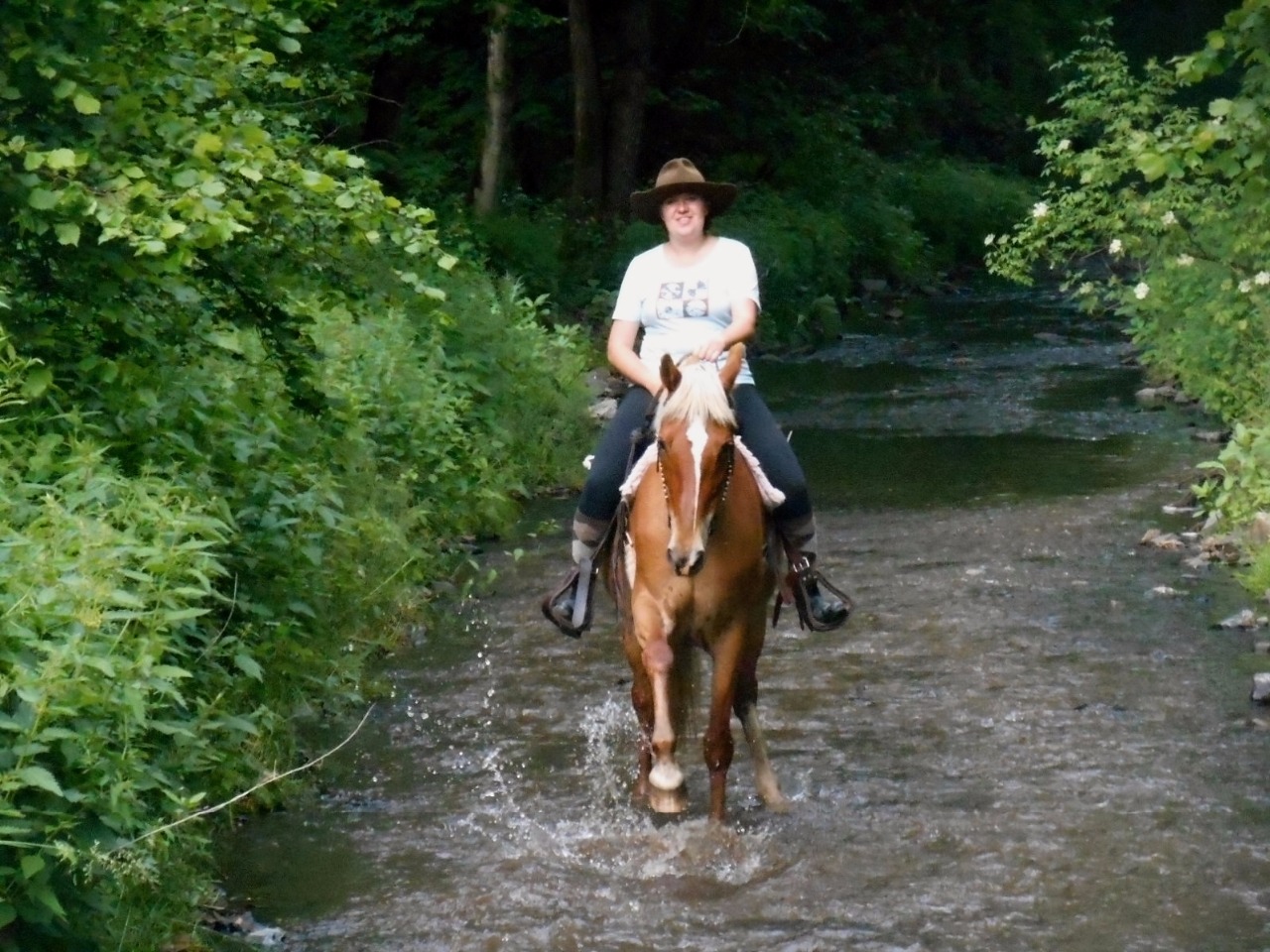 Tak a je tady červen - vedro jako na Sahaře, jsem zvědavá, co nás čeká teprve přes to pravé léto... :) Nějakou dobu jsem se neozvala, ale neznamená to, že s Eli zahálíme a válíme si šunky. Přesně naopak, od podzimu 2015 jsme taky poprvé zavítaly na pískovou jízdárnu a lehce se proskákaly. Čekala jsem, že Eli bude přece jen trochu protestovat, ale musím ji jenom pochválit, neřešila ani některé skoky, na které loni koukala jako na živé příšery, které jí chtějí sežrat zaživa :D Jinak samozřejmě jezdíme i do terénu, nejčastěji v doprovodu kamarádky Julči a jejího valacha Genta :) Co se týče terénů, tak Eli nemám co vytknout, venku mimo jízdárnu jí práce vždycky bavila a letos je asi v nejlepší kondici od doby, co ji vůbec mám. Svahy, příkopy,voda, spadlé kmeny stromů - no problem... :) Ale abych tu nepsala román, níže už pár fotek :)